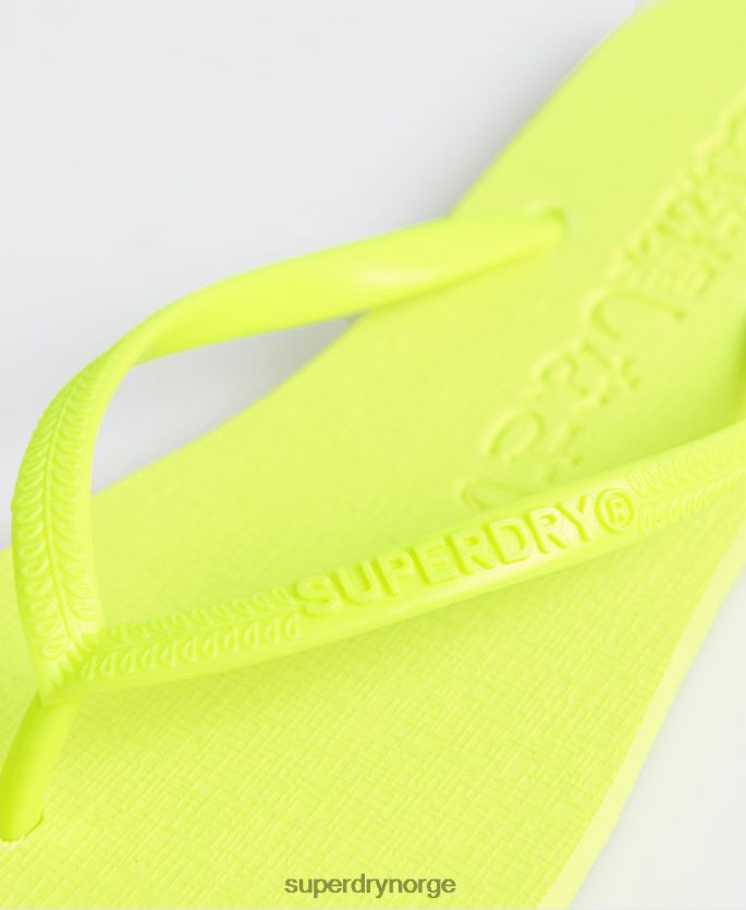 superdry superslank fluroflip for kvinner. en klassisk flip flop med en gummiert fotstropp, teksturert fotseng og superdry-merket såle. ferdig med en superdry-logo på stroppen og japanske tegn på fotsengen.
