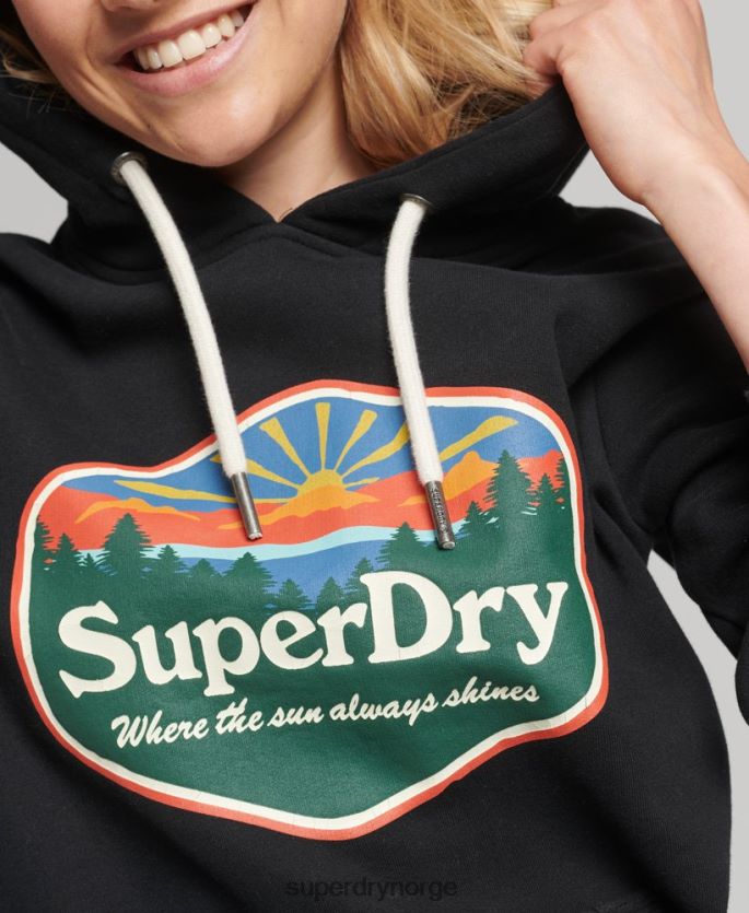 Superdry svart klær 86P46D6070 reise-hettegenser kvinner