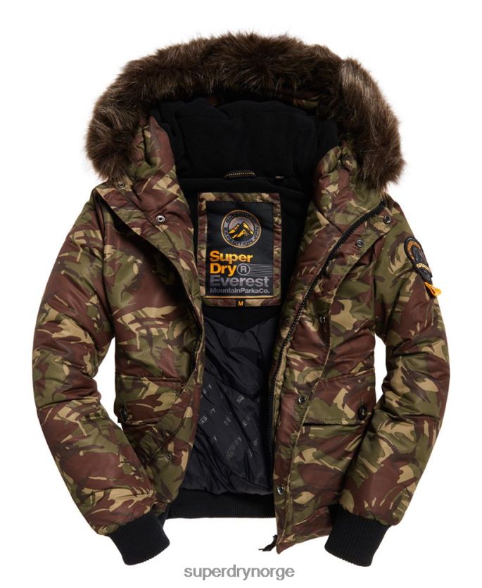 superdry everest bomberjakke for menn. hold deg varm denne sesongen i denne hettejakken i everest bomber-stil, med en avtakbar kant i fuskepels, justerbar hette med strikksnor og en trykkknapp og enkelt glidelås for å holde vinden ute. everest bombefly har fem utvendige lommer og en innvendig lomme for å holde eiendelene dine trygge. for prikken over i-en har everest-bomberen blitt designet med ribbestrikkede mansjetter og fald samt et superdry-merke på ermet for å inkludere både komfort og stil i denne jakken.