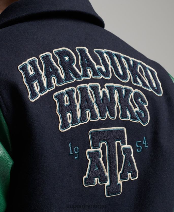 med all den inspirasjonen fra den klassiske amerikanske college-brevjakken, bringer den blandede universitetsbomberjakken denne arven sammen med førsteklasses ullrikt melton-stoff og oppmerksomhet på detaljer i design og finish for å gi deg et stykke som vil gi deg et selvsikkert og uformelt utseende.