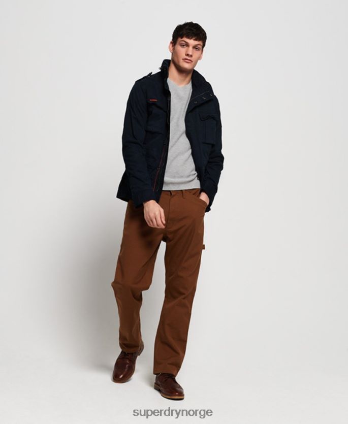 superdry klassisk rookie-lommejakke for menn. denne jakken har hovedglidelås og trykknapper, mansjetter med trykknapper og seks frontlommer. denne jakken har også en justerbar snøring i midjen og skulderepauletter. ferdig med et superdry-logomerke over den ene brystlommen og på det ene ermet.
