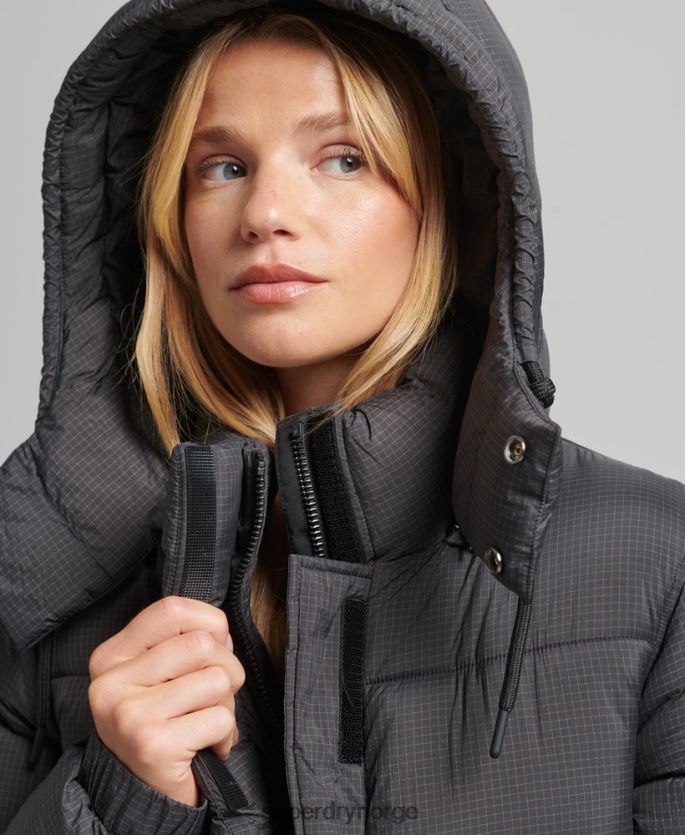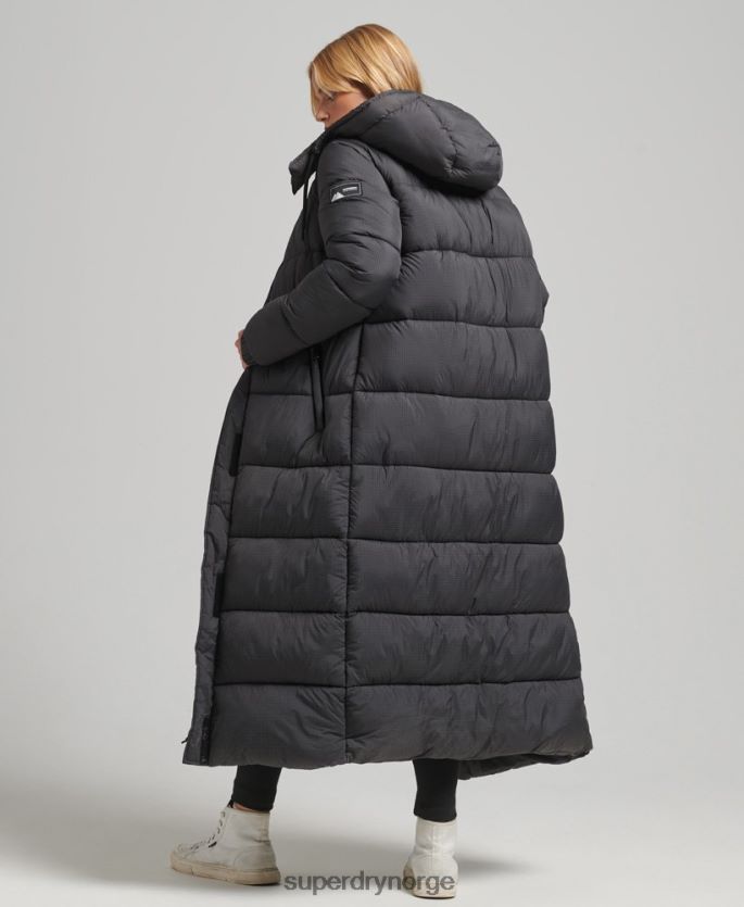 Superdry svart klær 86P46D3729 ripstop longline pufferjakke kvinner