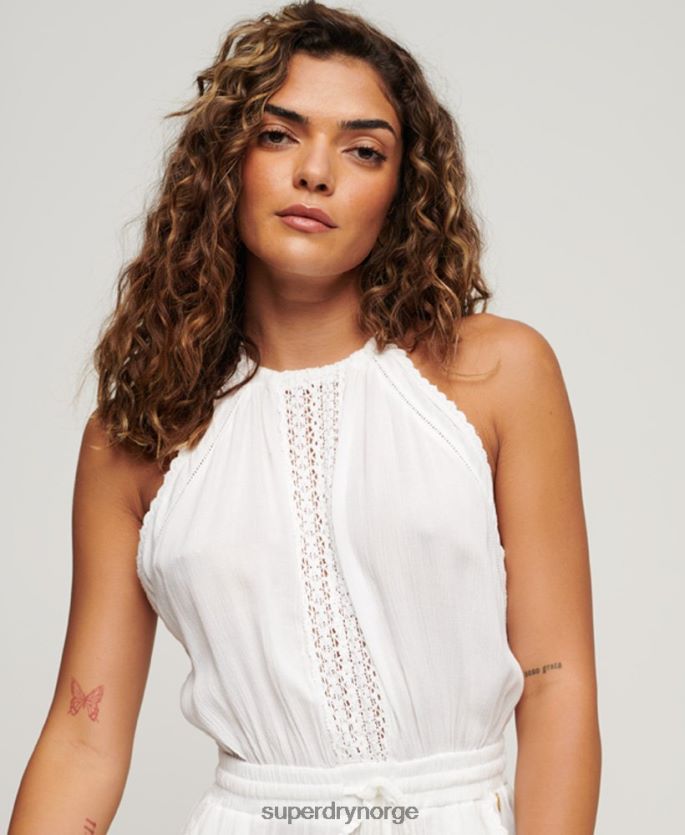 lekedressen vår med halterhals er vakkert laget for å gi deg en bohemsk kant til utseendet ditt. blondedetaljene legger til et snev av delikatesse som løfter lekedressen på en subtil måte, mens snøring i midjen fremhever silhuetten for å binde det hele sammen. enten du legger deg i lag på stranden eller skal ut på brunsj, er denne lekedressen et uanstrengt valg.