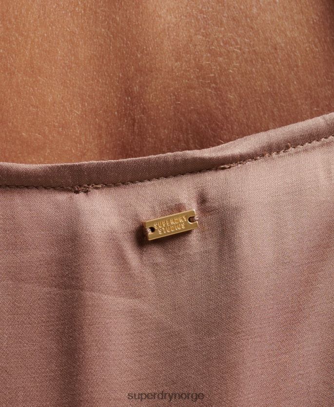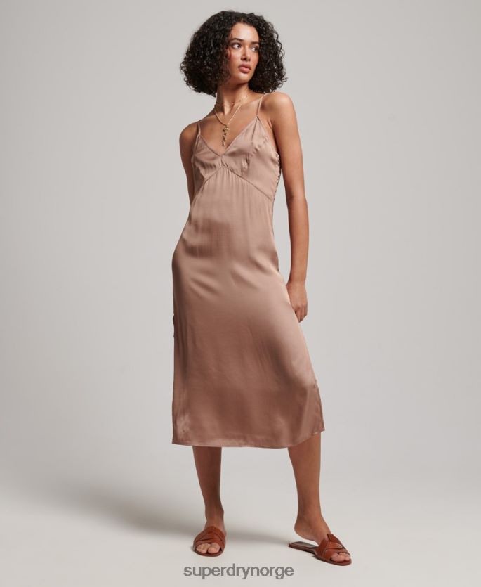Superdry brun klær 86P46D2377 sateng cami midikjole kvinner