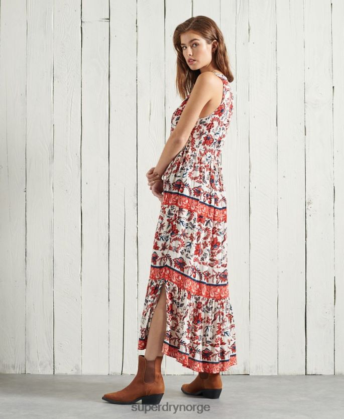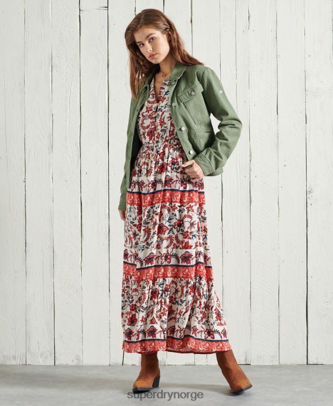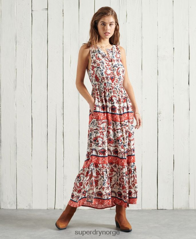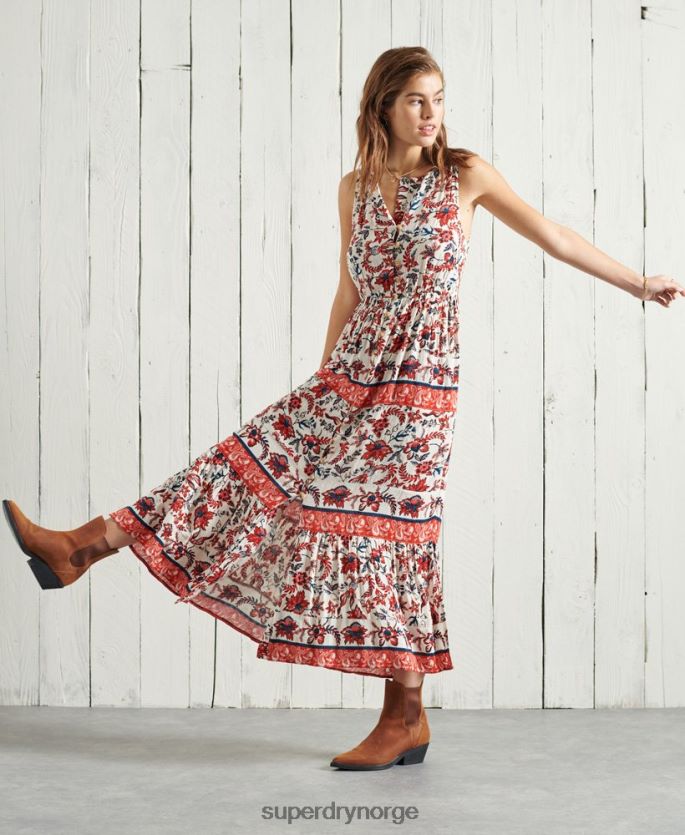 superdry luci maxi-kjole for kvinner. denne kjolen har et all-over print, knappelukkinger, to sidedeler og to skjulte sidelommer. bruk denne kjolen med favoritthælene dine for å fullføre looken.