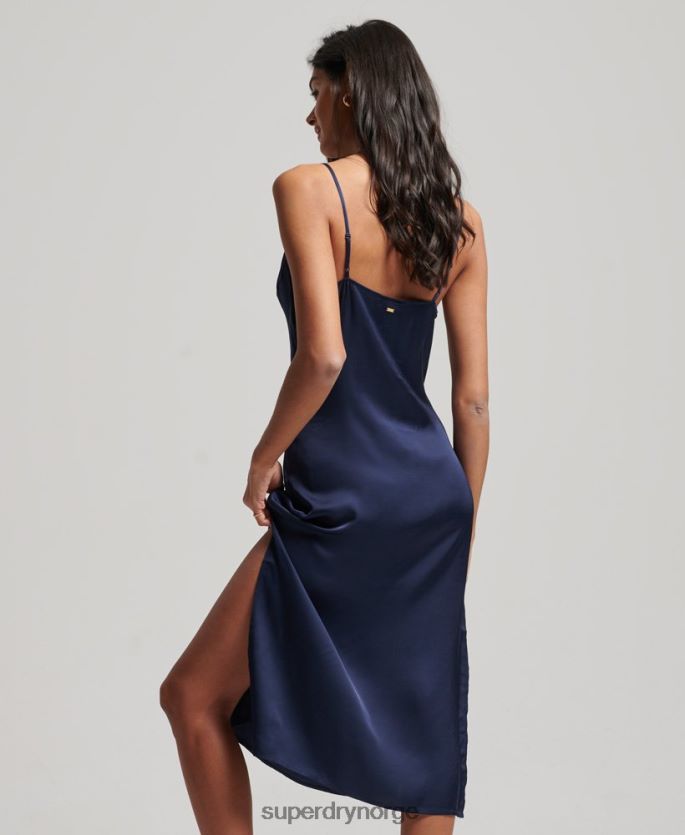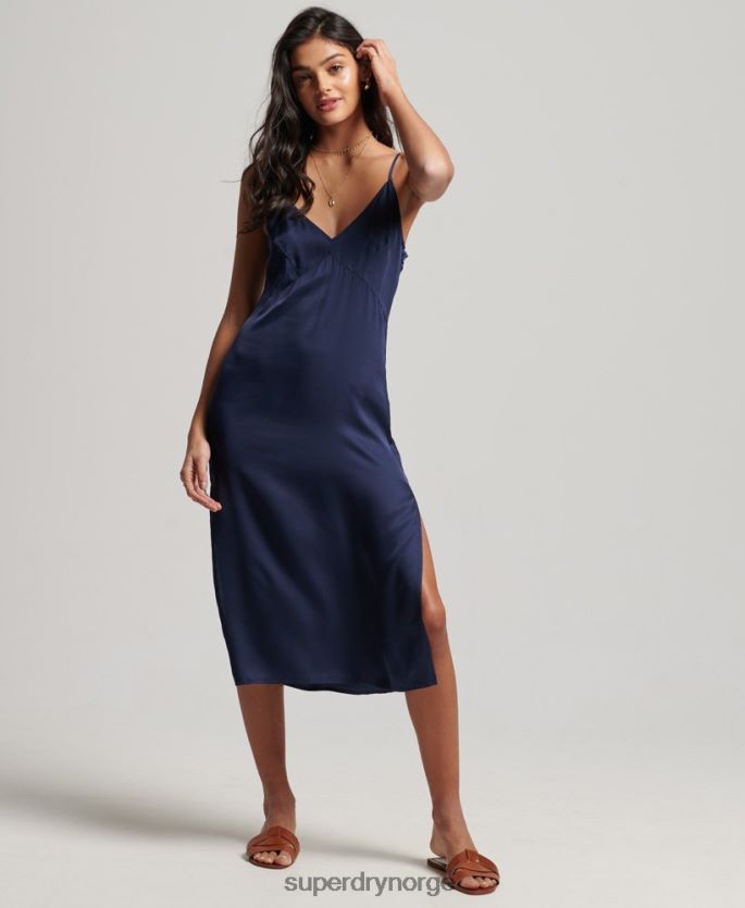 Superdry marinen klær 86P46D2402 sateng cami midikjole kvinner