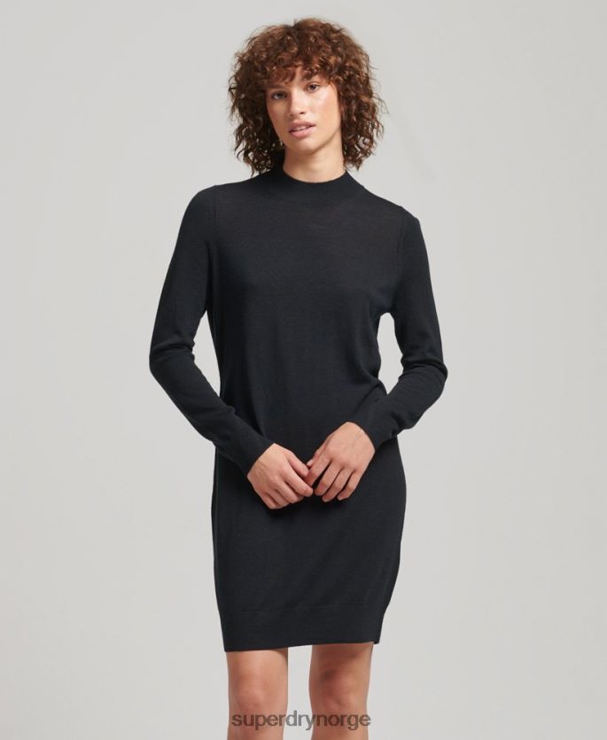 Superdry svart klær 86P46D2508 merino strikket kjole kvinner