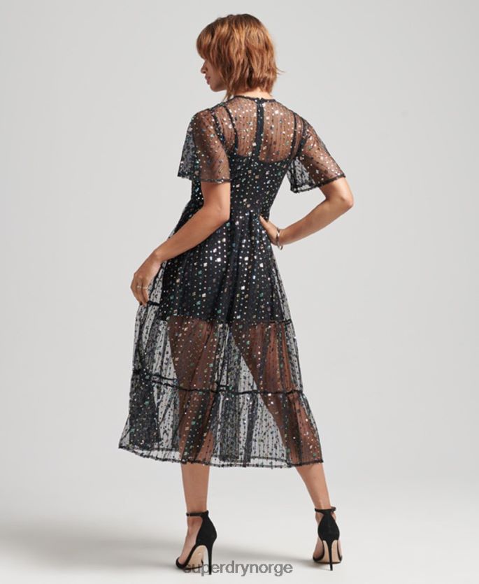 gå inn i rommet med alle øyne rettet mot deg i vår rene paljettvevde midikjole. de delikat plasserte paljettene fosser nedover dette stykket på en måte som forlenger silhuetten. det rene materialet løfter stilen, i kontrast til kroppens fôr for å skape et unikt elegant utseende. sommerfuglermer og et lagdelt skjørt hever den flytende stilen, slik at du kan flyte over dansegulvet og fange lyset. designet for brukeren som utstråler en uanstrengt chic.
