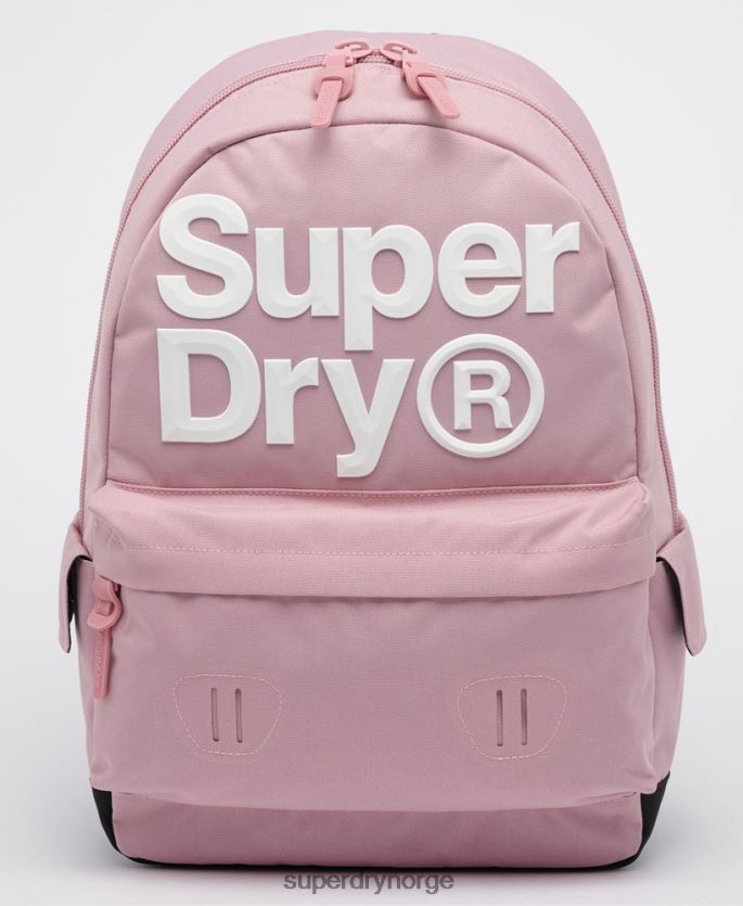 superdry montana ryggsekk for kvinner. denne ryggsekken har et polstret rom med glidelås med lommedesign på innsiden, en liten utvendig lomme med glidelås og to sidelommer med trykknapper. Det finnes også et håndtak og to justerbare stropper. komplett med et superdry-logoemblem i gummi på den ene stroppen og en stor superdry-logo i gummi foran.