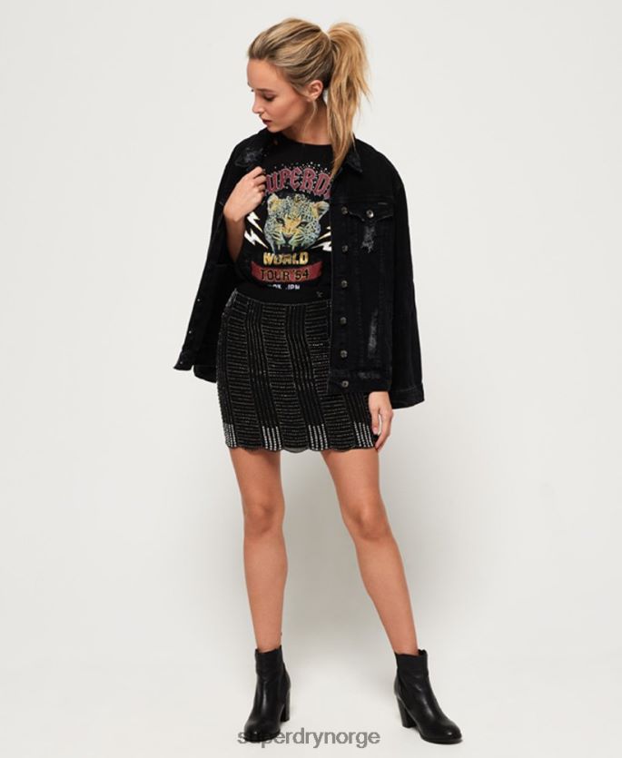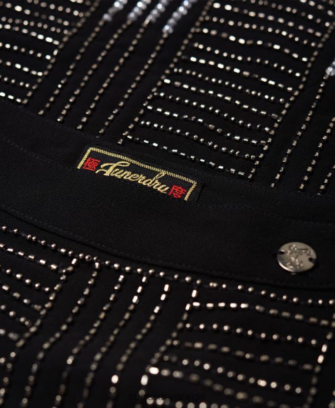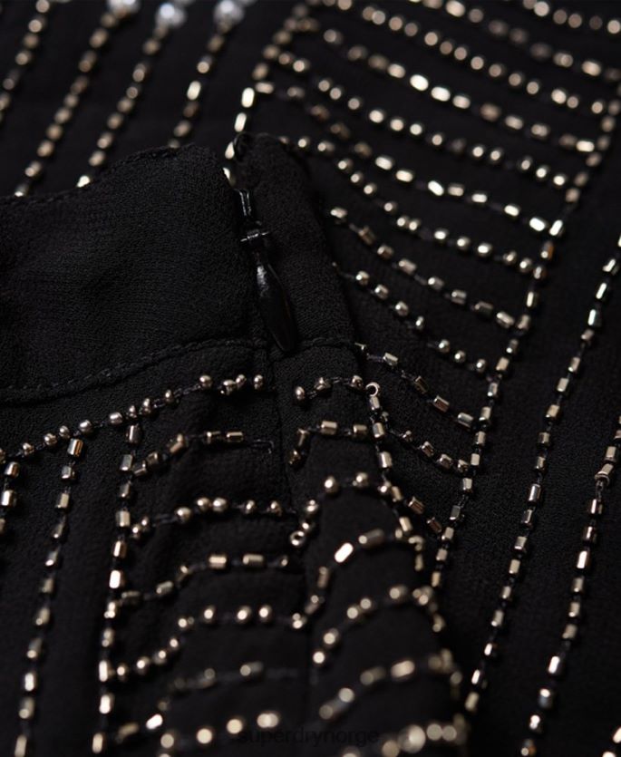 supertørt breskjørt for kvinner. injiser litt blending i garderoben din med breskjørtet, med intrikate perledetaljer som garantert vil få deg til å skinne. skjørtet er festet med glidelås i siden og har et subtilt logomerke på linningen, mens kamskjelldetaljer på falden gir den prikken over i'en. stil med en body og støvletter med hæl for en glam kveldslook.