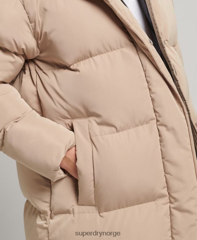 Superdry beige klær 86P46D3595 hette langline pufferfrakk kvinner