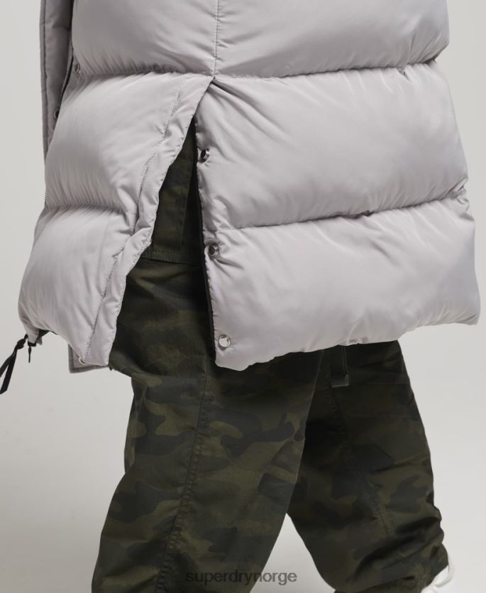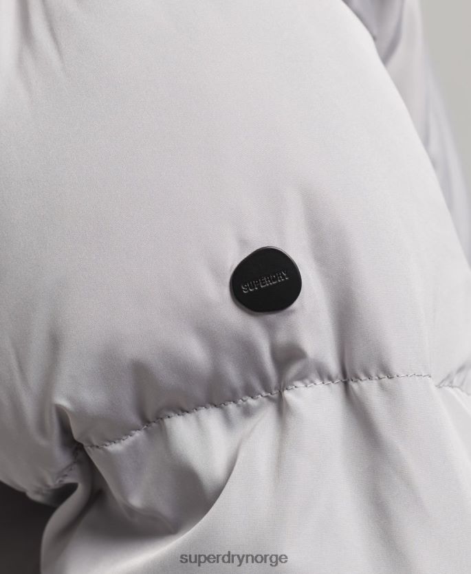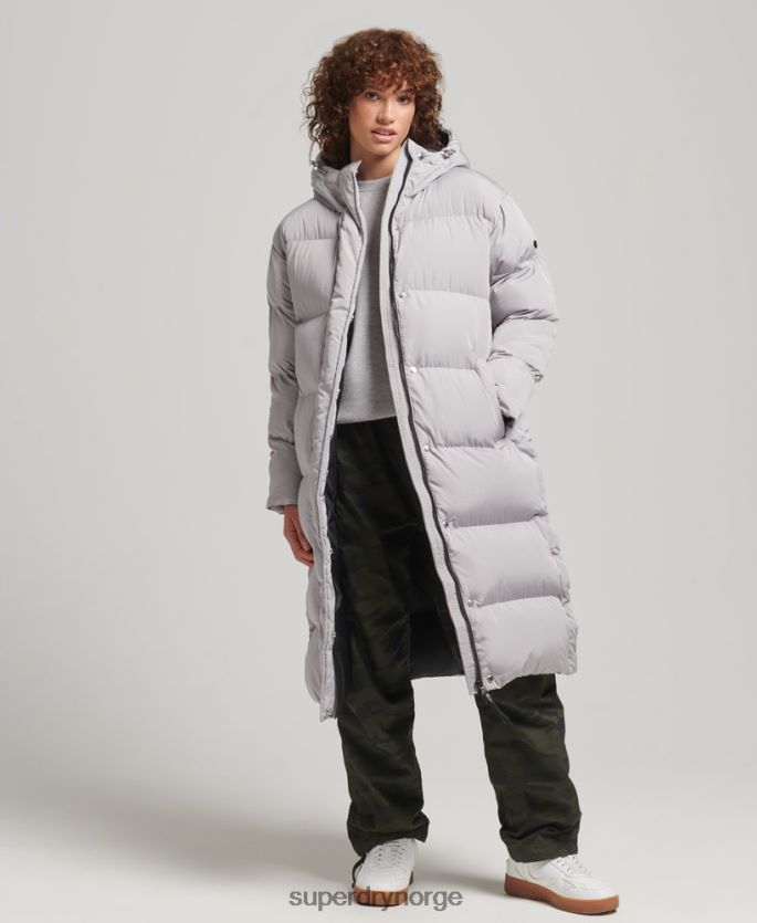 Superdry lysegrå klær 86P46D3743 hette langline pufferfrakk kvinner