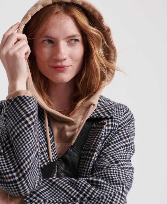 superdry koben ullkåpe for kvinner. noen kåper er tidløse, og dette stykket er intet unntak. se en del denne sesongen i koben-ullkåpen, med dobbel trykklås og to lommer. kåpen er ferdig med en superdry-logolapp på den ene mansjetten og et diskret superdry-merke i metall på lommen. tkast over en tykk strikk og de beste støvlene dine for den ultimate høstlige stilen.