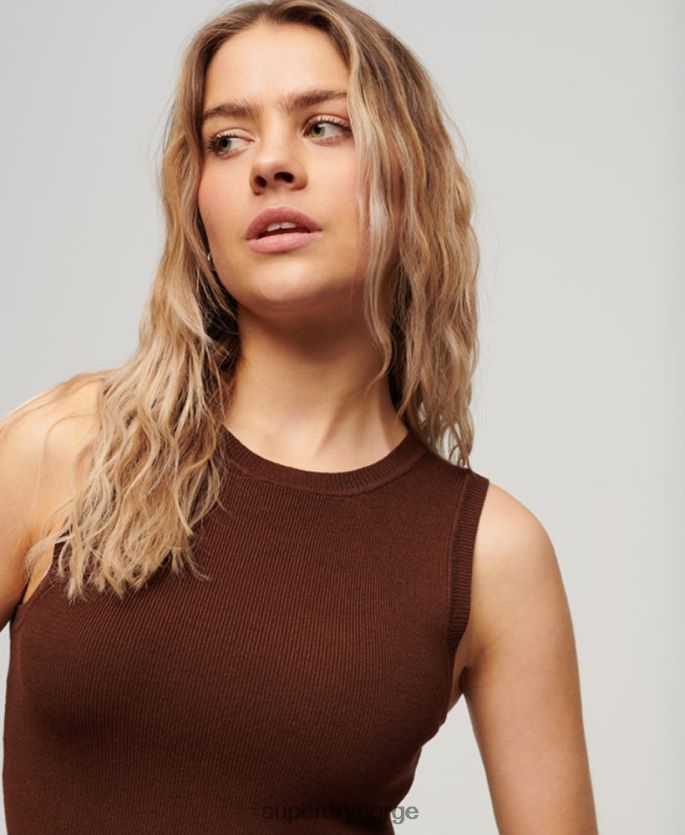 Superdry brun klær 86P46D1993 finstrikket tanktopp kvinner