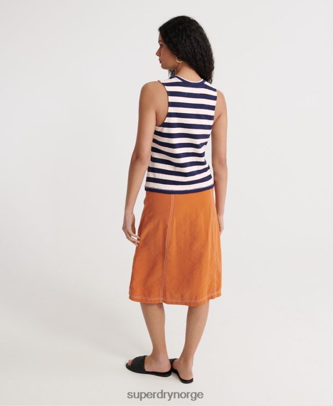stripe en positur i sommer i sommerstripevesten. denne førsteklasses bomullsvesten har en stripete design og rund hals.