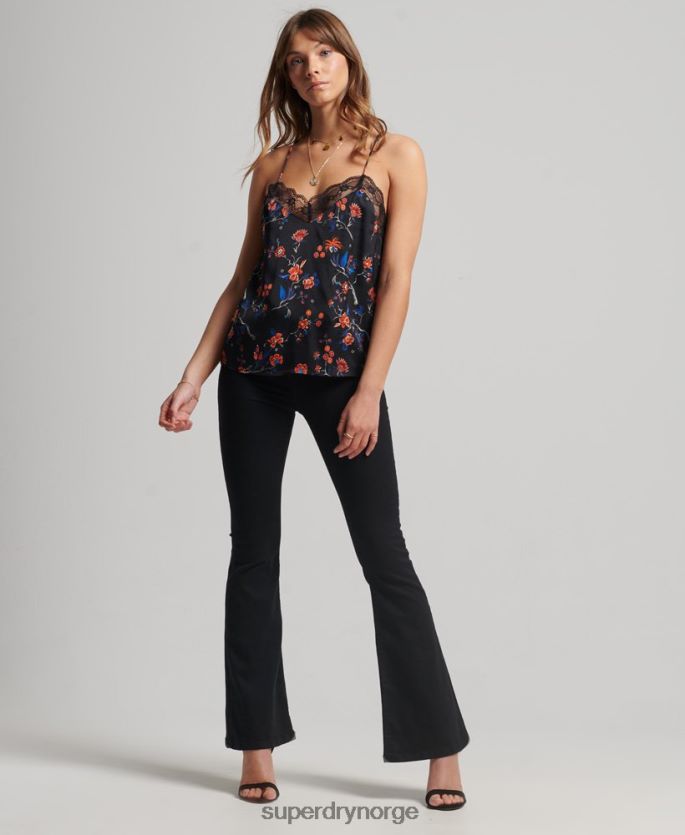 Superdry svart klær 86P46D3030 sateng cami topp kvinner